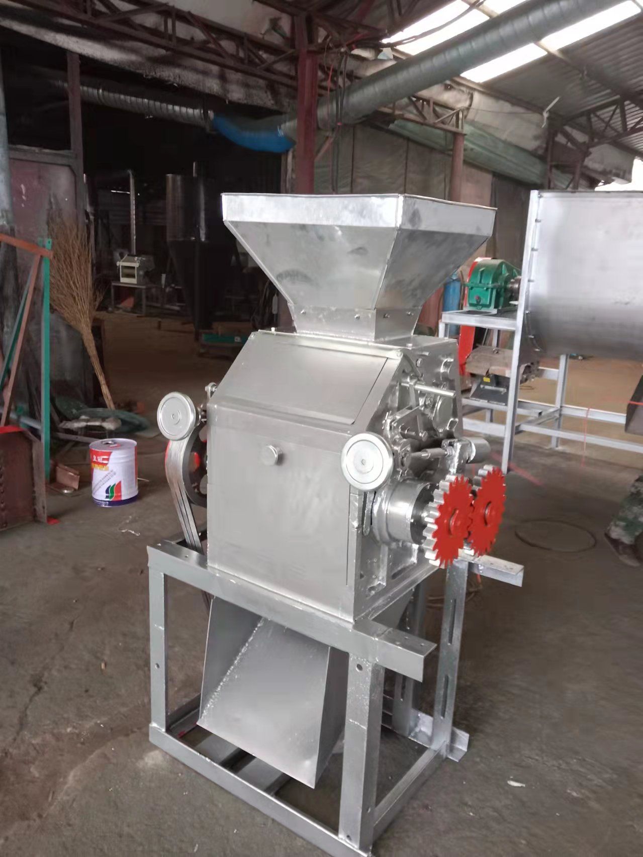 或者进一步发酵或酿造,应用于化工、酿酒、啤酒、制药等行业。对辊挤扁机还可用于花椒等物料的脱壳脱皮。压制后的麦片、豆扁等用于熬粥或煲汤,熟化好,便于消化吸收,批量加工进入超市十分受欢迎,是小杂粮加工的理想设备。 -